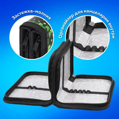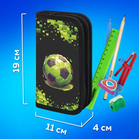 Пенал стандартного размера ПИФАГОР с двумя отделениями выполнен из ламинированного картона. Яркий дизайн. Удобные молнии с металлическим бегунком с трех сторон, прочные резинки для предметов. Вмещает до 25 предметов.