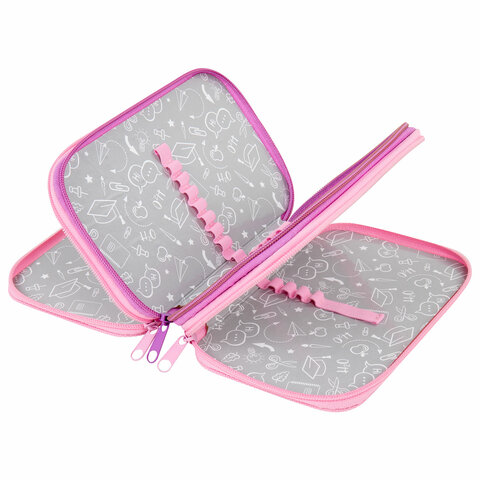 Пенал ПИФАГОР яркого дизайна с тремя отделениями выполнен из ламинированного картона, имеет тканевый торец. Удобные молнии с металлическим бегунком с трех сторон, прочные резинки для предметов. Вмещает до 42 предметов.