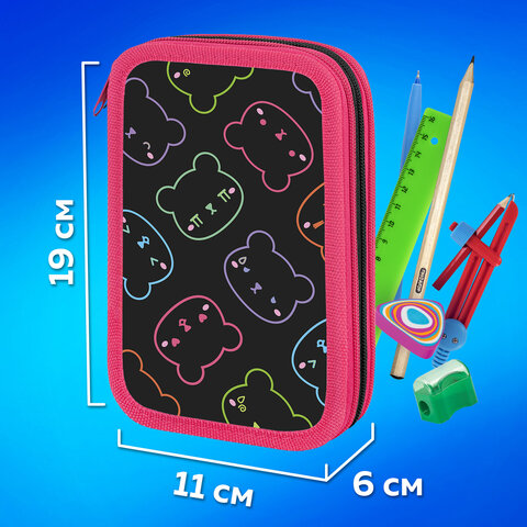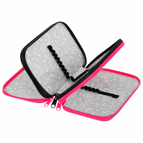 Пенал ПИФАГОР яркого дизайна с 3 отделениями выполнен из ламинированного картона и имеет тканевый торец. Удобные молнии с металлическими бегунками расположены с трёх сторон, а внутри предусмотрены прочные резинки для фиксации канцелярских принадлежностей.