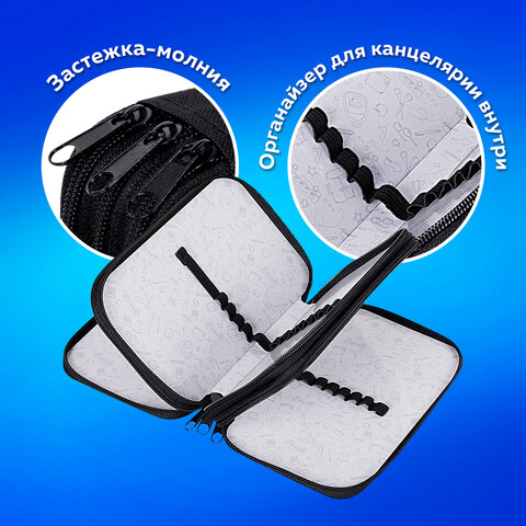 Пенал ПИФАГОР яркого дизайна с тремя отделениями выполнен из ламинированного картона, имеет тканевый торец. Удобные молнии с металлическим бегунком с трех сторон, прочные резинки для предметов. Вмещает до 42 предметов.