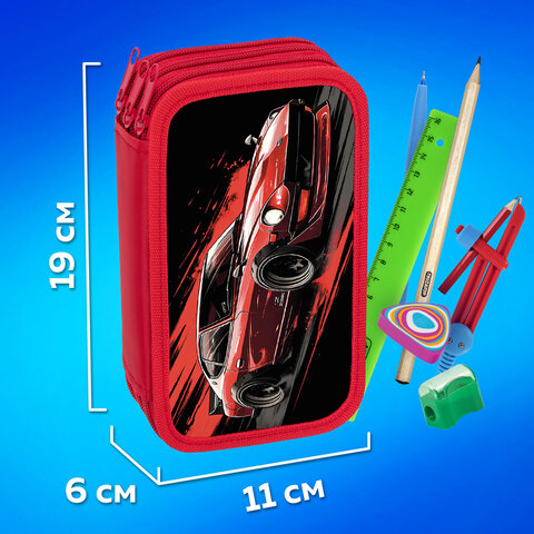 Пенал ПИФАГОР, 3 отделения, ламинированный картон, 19х11 см, "Red road", 273490