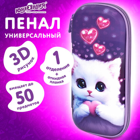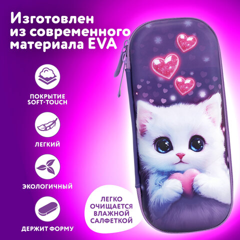 Пенал ЮНЛАНДИЯ, 1 отделение, 1 откидная планка, карман, EVA покрытие soft-touch, 22х10х5 см, "Cute cat", 273184