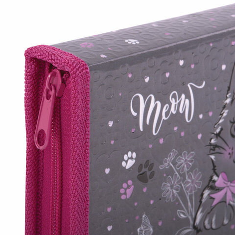 Пенал ЮНЛАНДИЯ, 1 отделение, металлизированный картон, конгрев, 19х11 см, "Meow", 271103