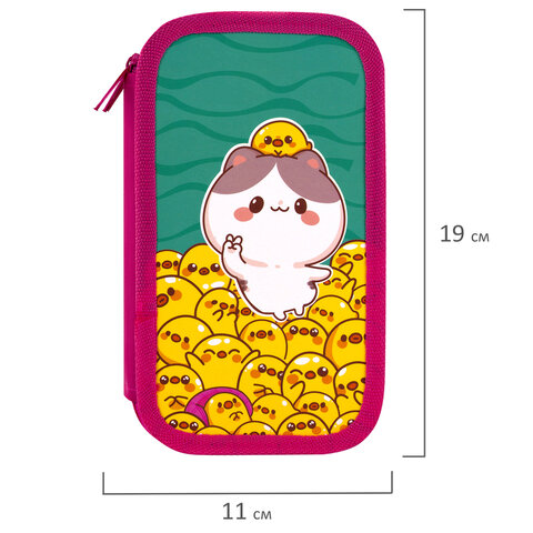 Пенал ЮНЛАНДИЯ стандартного размера с тремя отделениями. Выполнен из картона с эффектом soft-touch. Яркий дизайн. Удобная молния с металлическим бегунком с трех сторон, прочные резинки для канцелярских принадлежностей. Вмещает до 42 предметов.