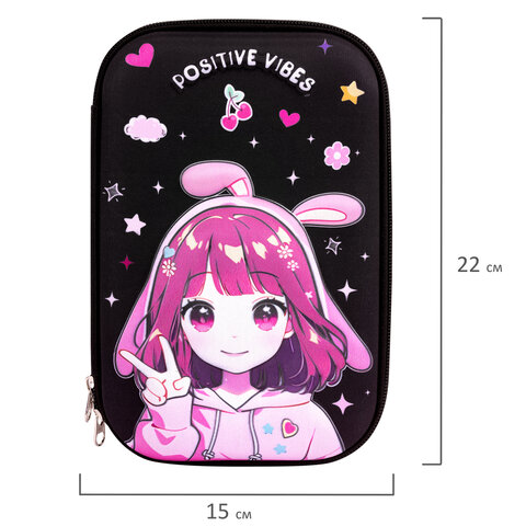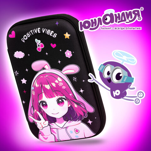 Пенал ЮНЛАНДИЯ большой, 1 отделение, 1 откидная планка, карман, полиэстер/EVA, 22х15х5 см, "Anime sign", 273194