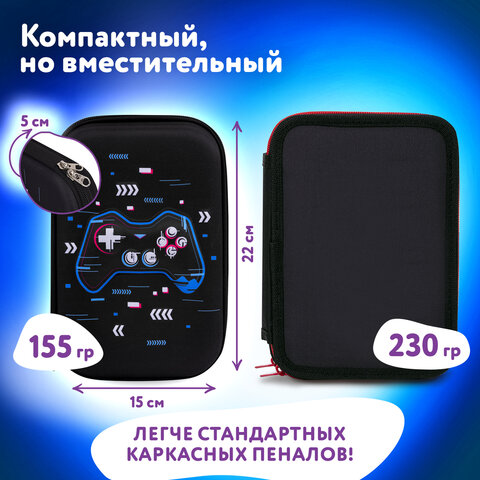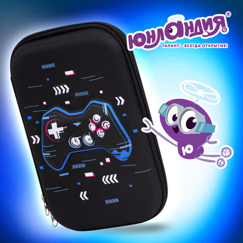 Пенал ЮНЛАНДИЯ большой, 1 отделение, 1 откидная планка, карман, полиэстер/EVA, 22х15х5 см, "Lucky gamer", 273196