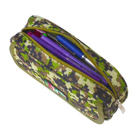 Пенал BRAUBERG для мальчиков, 1 отделение, органайзер, мягкий, "Military", зеленый, 21х5х9 см, 228990