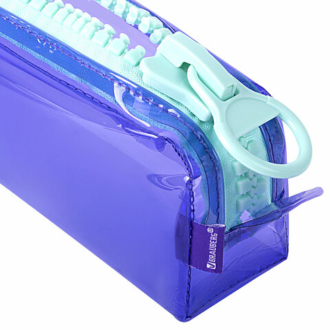 Пенал BRAUBERG с объемной "тракторной" молнией, 1 отделение, ПВХ, 22х8х6,5 см, "Contrast mint", 271565