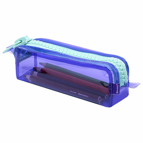 Пенал прямоугольной формы, выполнен из тонированного прозрачного ПВХ. Вмещает до 50 предметов стандартного размера.