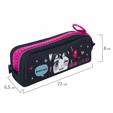 Пенал BRAUBERG с объемной "тракторной" молнией, 1 отделение, ткань, 22х8х6,5 см, "Anime girl", 271566
