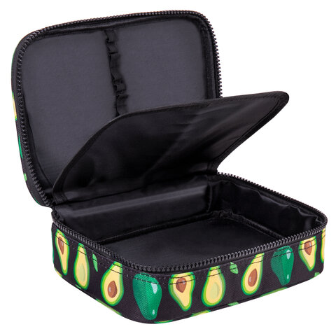 Пенал-косметичка BRAUBERG БОЛЬШОЙ, 1 отделение, 1 откидная планка, ткань, 21x15x6 см, "Avocado", 270706