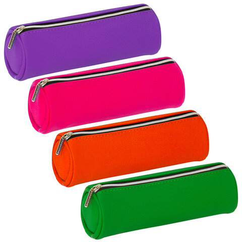 Пенал-косметичка BRAUBERG под фактурную кожу, ассорти 4 цвета, "Экзотика", 20х6х6 см, дисплей, 224041