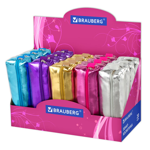 Пенал-косметичка BRAUBERG "Винтаж" выполнен из прочного мягкого блестящего материала. Пенал вмещает до 50 канцелярских принадлежностей стандартных размеров. Поставляется в нескольких вариантах цвета (без возможности выбора).
