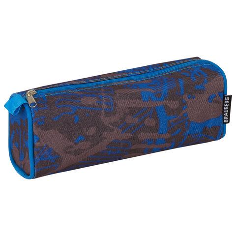 Пенал-косметичка BRAUBERG полиэстер, серый/голубой, "Элемент", 21х6х8 см, 223905