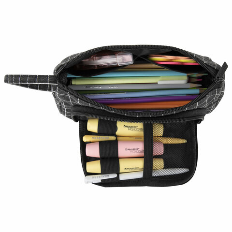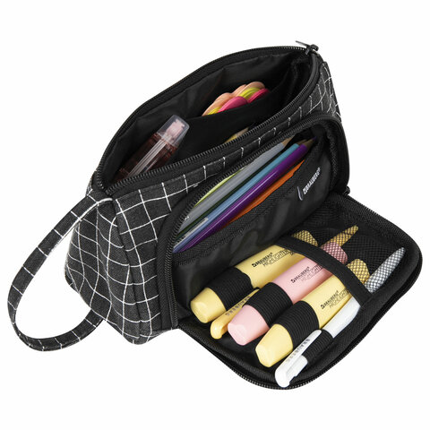 Пенал-косметичка BRAUBERG с ручкой, 1 откидная планка, полиэстер, 22x10х8 см, "Checkered black", 271559