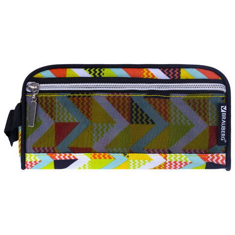 Пенал-косметичка BRAUBERG с ручкой, карман из сетки, полиэстер, "Citrus", 20х6х9 см, 229274