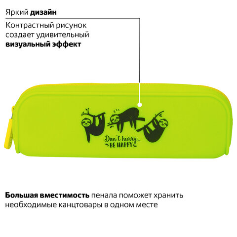 Пенал-косметичка BRAUBERG, силикон, "Sloths", 20х5х6 см, 229032