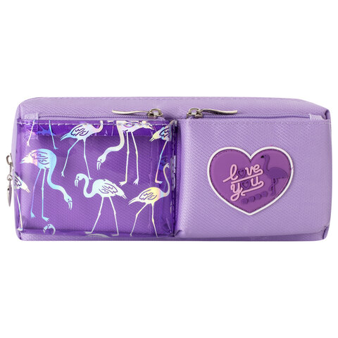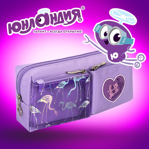 Пенал-косметичка ЮНЛАНДИЯ, 1 отделение, 2 кармана, полиэстер, "Flamingo", фиолетовый, 20х6х8 см, 270260