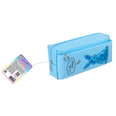 Пенал мягкий ЮНЛАНДИЯ, 2 отделения, полиэстер, "Bunny", голубой, 20х7х9 см, 228987