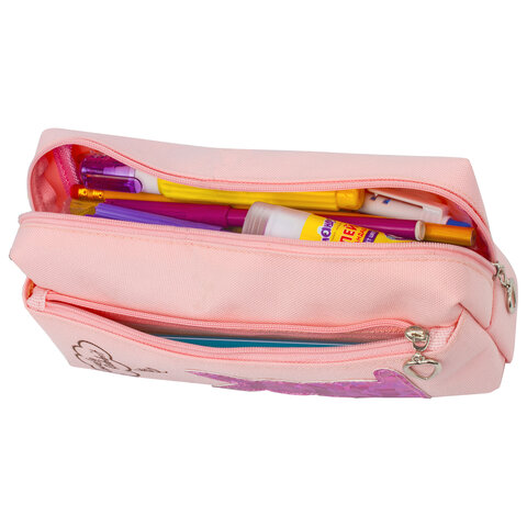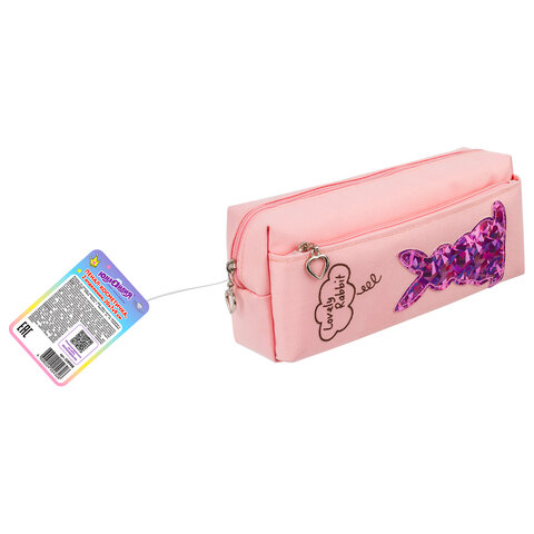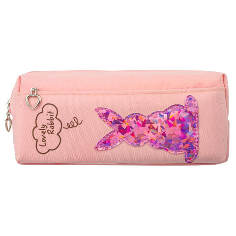 Пенал мягкий ЮНЛАНДИЯ, 2 отделения, полиэстер, "Bunny", розовый, 20х7х9 см, 228988