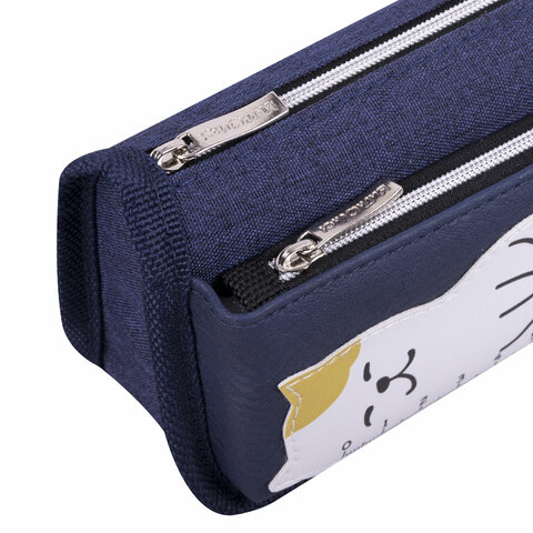 Пенал мягкий ЮНЛАНДИЯ, 2 отделения, полиэстер, "Cats rule", синий, 21х9х6 см, 271576