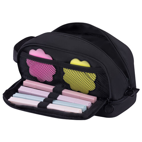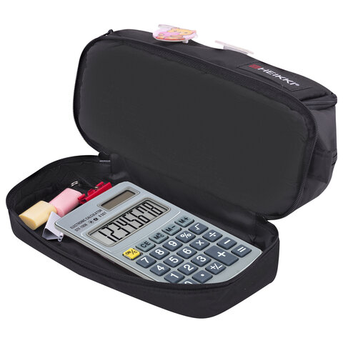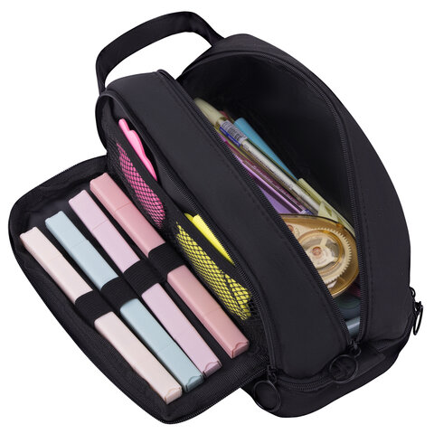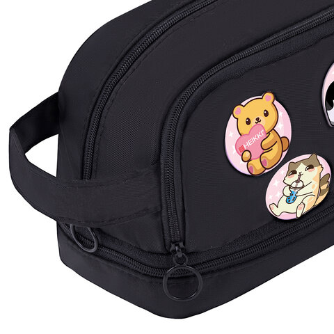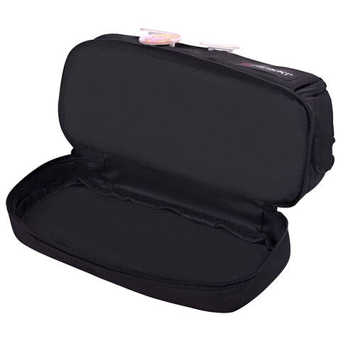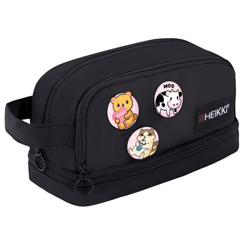 Пенал-органайзер HEIKKI (ХЕЙКИ) с ручкой, значки, 2 отделения, откидная планка, 22x13х10 см, черный, 273599