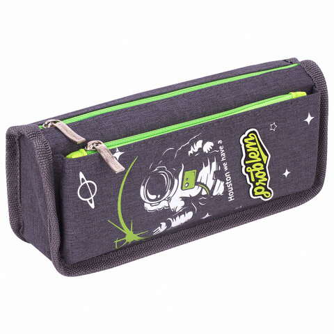 Пенал мягкий ЮНЛАНДИЯ, 2 отделения, полиэстер, "Cosmonaut", серый, 21х6х9 см, 270275