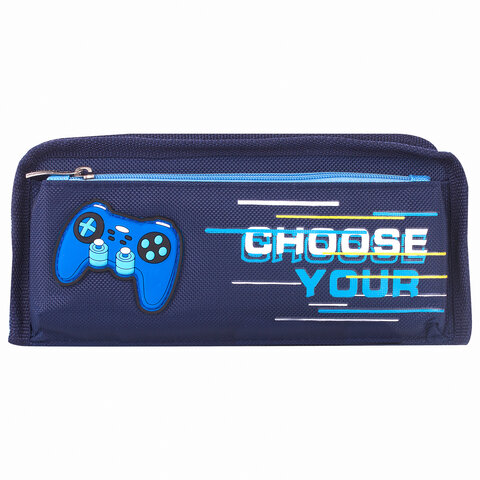 Пенал мягкий ЮНЛАНДИЯ, 2 отделения, полиэстер, "Joystick", синий, 21х6х9 см, 270274