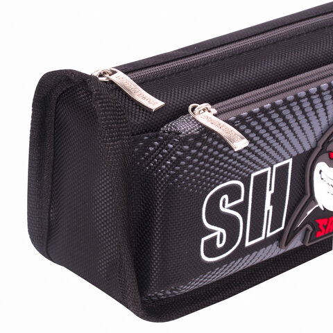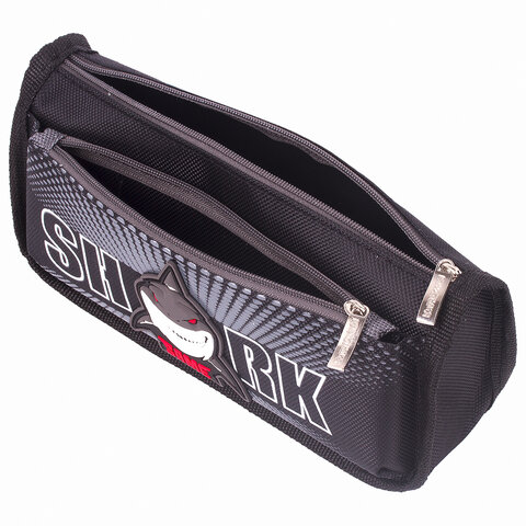 Пенал мягкий ЮНЛАНДИЯ, 2 отделения, полиэстер, "Shark", черный, 21х6х9 см, 270271