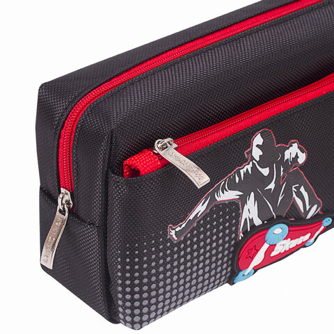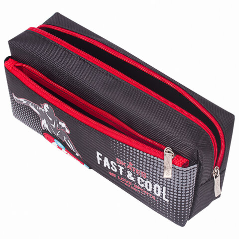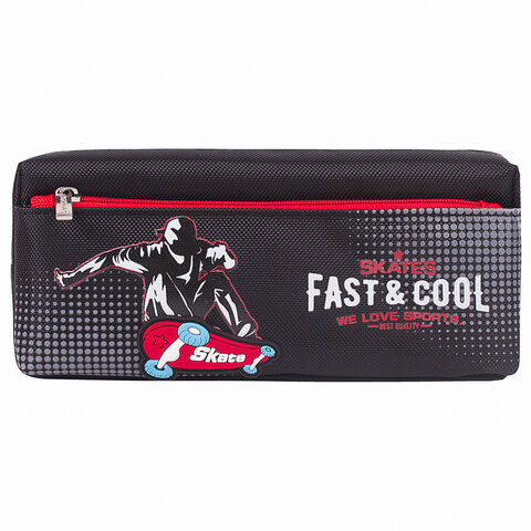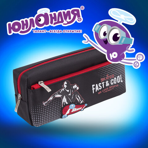Пенал мягкий ЮНЛАНДИЯ, 2 отделения, полиэстер, "Skate", черный, 21х6х9 см, 270276