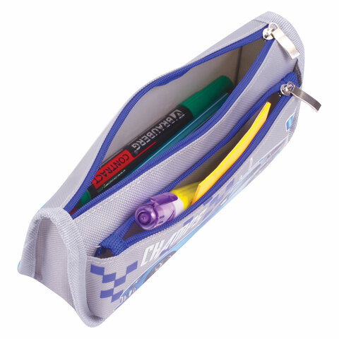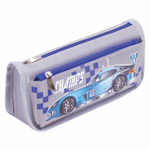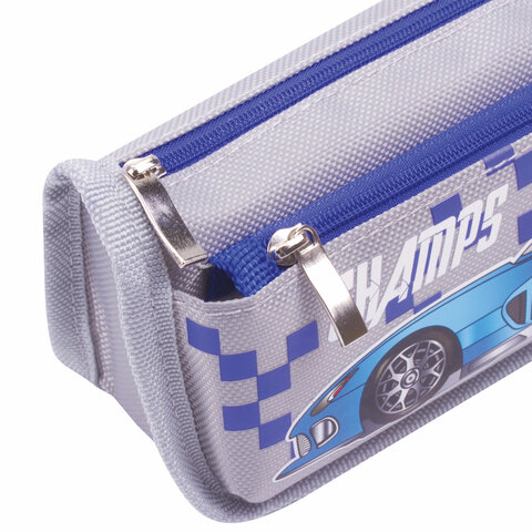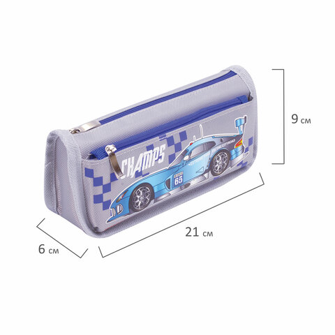 Пенал мягкий ЮНЛАНДИЯ, 2 отделения, полиэстер, "Car champion", серый, 21х6х9 см, 228983