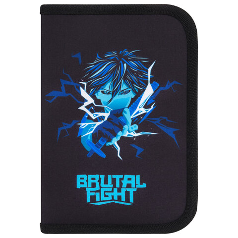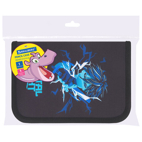 Пенал BRAUBERG с наполнением, 1 отделение, 1 откидная планка, 24 предмета, 21х14 см, "Anime fight", 272354