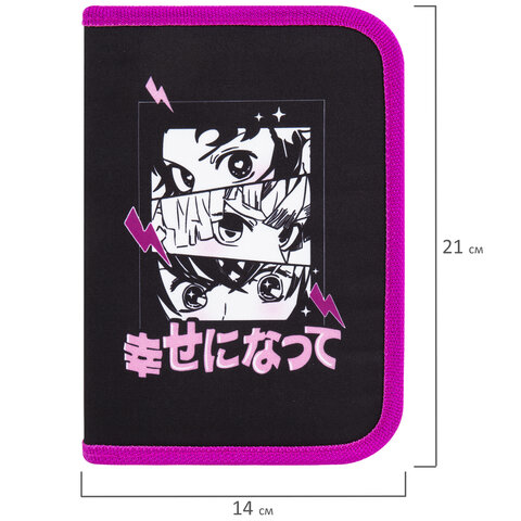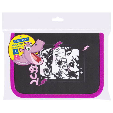 Пенал BRAUBERG с наполнением, 1 отделение, 1 откидная планка, 24 предмета, 21х14 см, "Anime movie", 272349