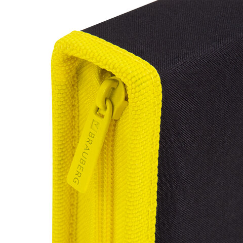 Тканевый пенал BRAUBERG стандартного размера с одним отделением и одной откидной планкой. Удобная молния с трех сторон с металлическим бегунком, прочные резинки для предметов. Пенал с наполнением включает 24 предмета.