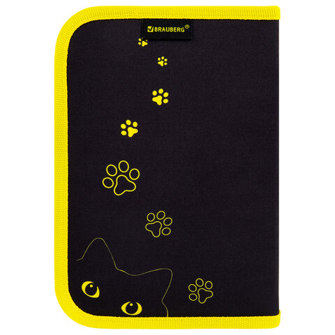 Пенал BRAUBERG с наполнением, 1 отделение, 1 откидная планка, 24 предмета, 21х14 см, "Dark cat", 272351