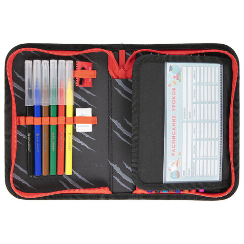 Пенал BRAUBERG с наполнением, 1 отделение, 1 откидная планка, 24 предмета, 21х14 см, "Colorful lion", 270725