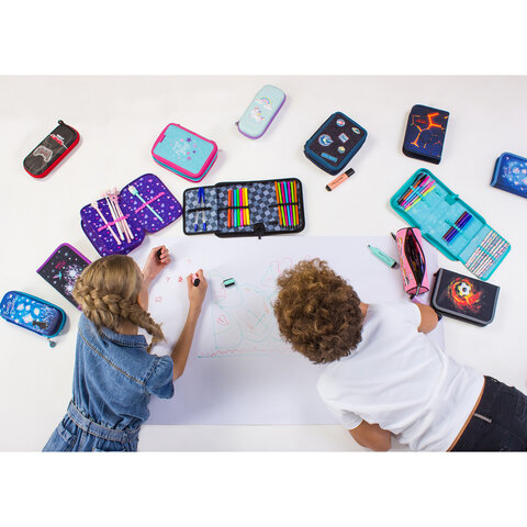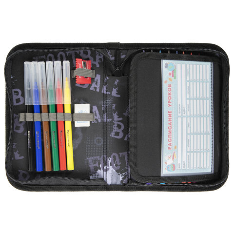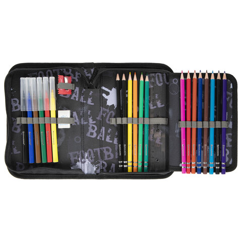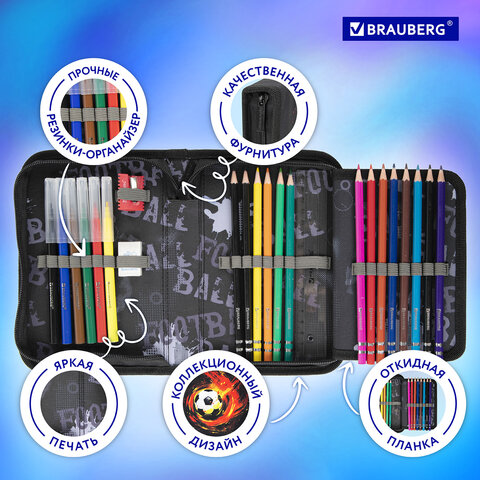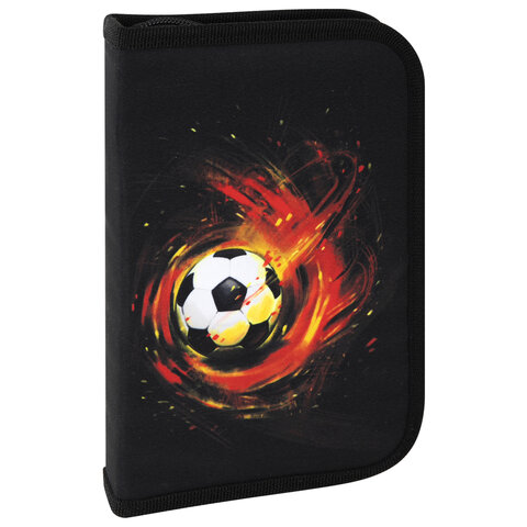 Пенал BRAUBERG с наполнением, 1 отделение, 1 откидная планка, 24 предмета, 21х14 см, "Fireball", 270723
