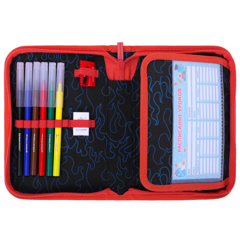 Пенал BRAUBERG с наполнением, 1 отделение, 1 откидная планка, 24 предмета, 21х14 см, "Foggy car", 273533