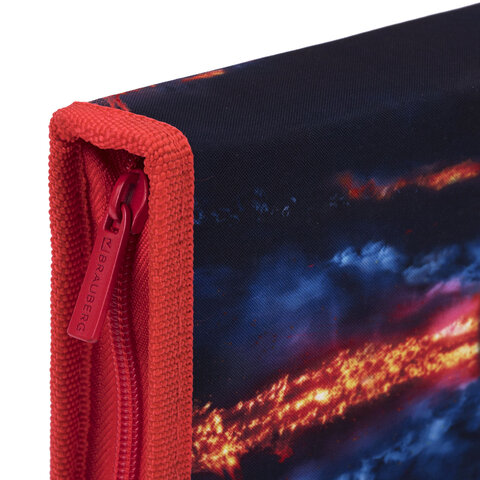 Тканевый пенал BRAUBERG "Foggy car" стандартного размера с одним отделением и одной откидной планкой. Удобная молния с трех сторон с металлическим бегунком, прочные резинки для предметов. Пенал с наполнением включает 24 предмета.
