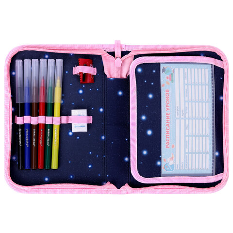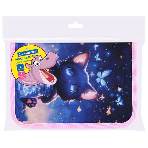 Пенал BRAUBERG с наполнением, 1 отделение, 1 откидная планка, 24 предмета, 21х14 см, "Night catcher", 273530