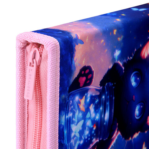 Тканевый пенал BRAUBERG "Night catcher" стандартного размера с одним отделением и одной откидной планкой. Удобная молния с трех сторон с металлическим бегунком, прочные резинки для предметов. Пенал с наполнением включает 24 предмета.