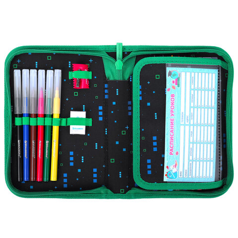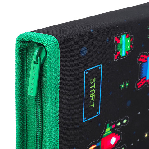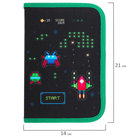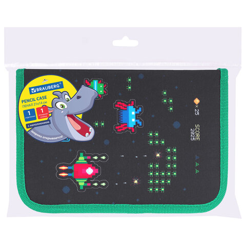 Тканевый пенал BRAUBERG "Space strike" стандартного размера с одним отделением и одной откидной планкой. Удобная молния с трех сторон с металлическим бегунком, прочные резинки для предметов. Пенал с наполнением включает 24 предмета.