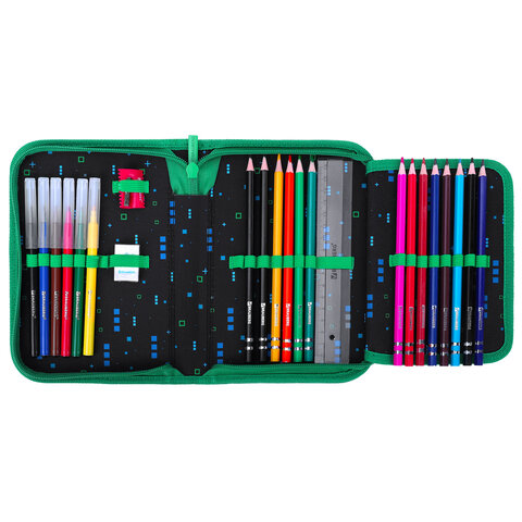 Пенал BRAUBERG с наполнением, 1 отделение, 1 откидная планка, 24 предмета, 21х14 см, "Space strike", 273534