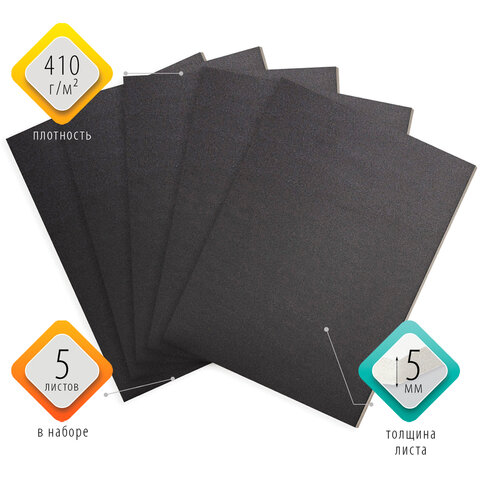 Пенокартон матовый, 30х40 см, толщина 5 мм, черный, КОМПЛЕКТ 5 листов, BRAUBERG, 112469