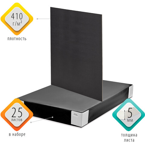Пенокартон матовый, 70х100 см, толщина 5 мм, черный, BRAUBERG, 112480