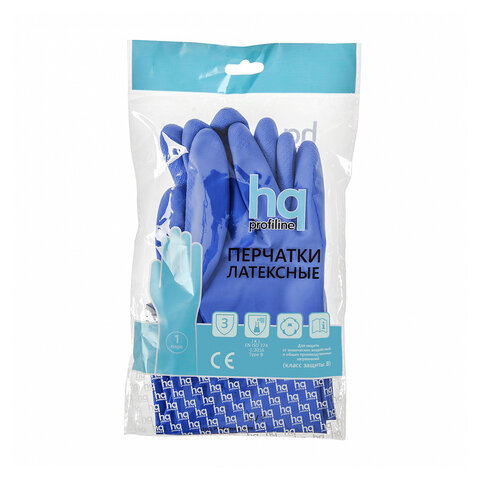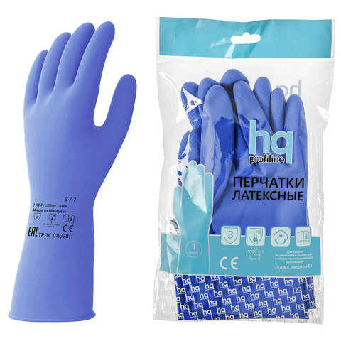 Перчатки латексные КЩС, сверхпрочные, плотные, хлопковое напыление, размер 7, S (малый), синие, HQ Profiline, 74733