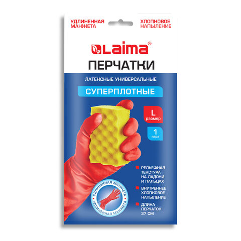 Универсальные суперплотные латексные перчатки LAIMA защищают руки от воздействия грязи, влаги, моющих и чистящих средств при любых бытовых и хозяйственных работах: мытьё посуды, стирка белья, уборка, садоводческая работа и т.д.