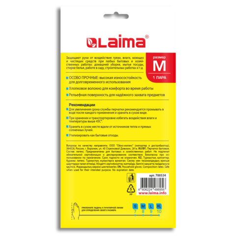Универсальные латексные перчатки LAIMA защищают руки от воздействия грязи, влаги, моющих и чистящих средств при любых бытовых и хозяйственных работах: мытьё посуды, стирка белья, уборка, садоводческая работа и т.д.