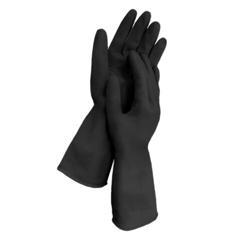 Перчатки МНОГОРАЗОВЫЕ латексные LAIMA, с ХЛОПКОВЫМ ВОЛОКНОМ, черные, размер M (средний), вес 55 г, 700534