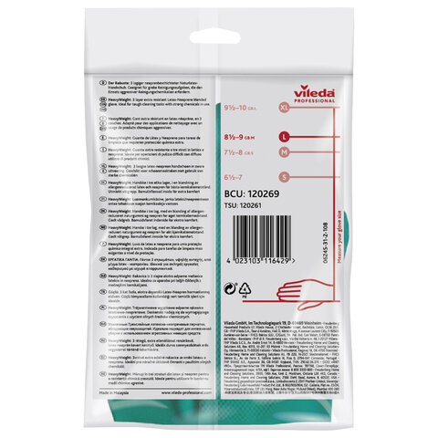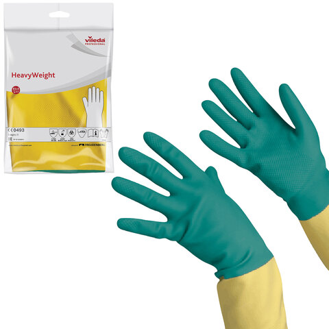 Усиленные 3-слойные латексные перчатки VILEDA Professional с неопреновой обработкой. Прочные, долговечные, а также защищают от вирусов. Идеальны для генеральной уборки с использованием агрессивной химии.